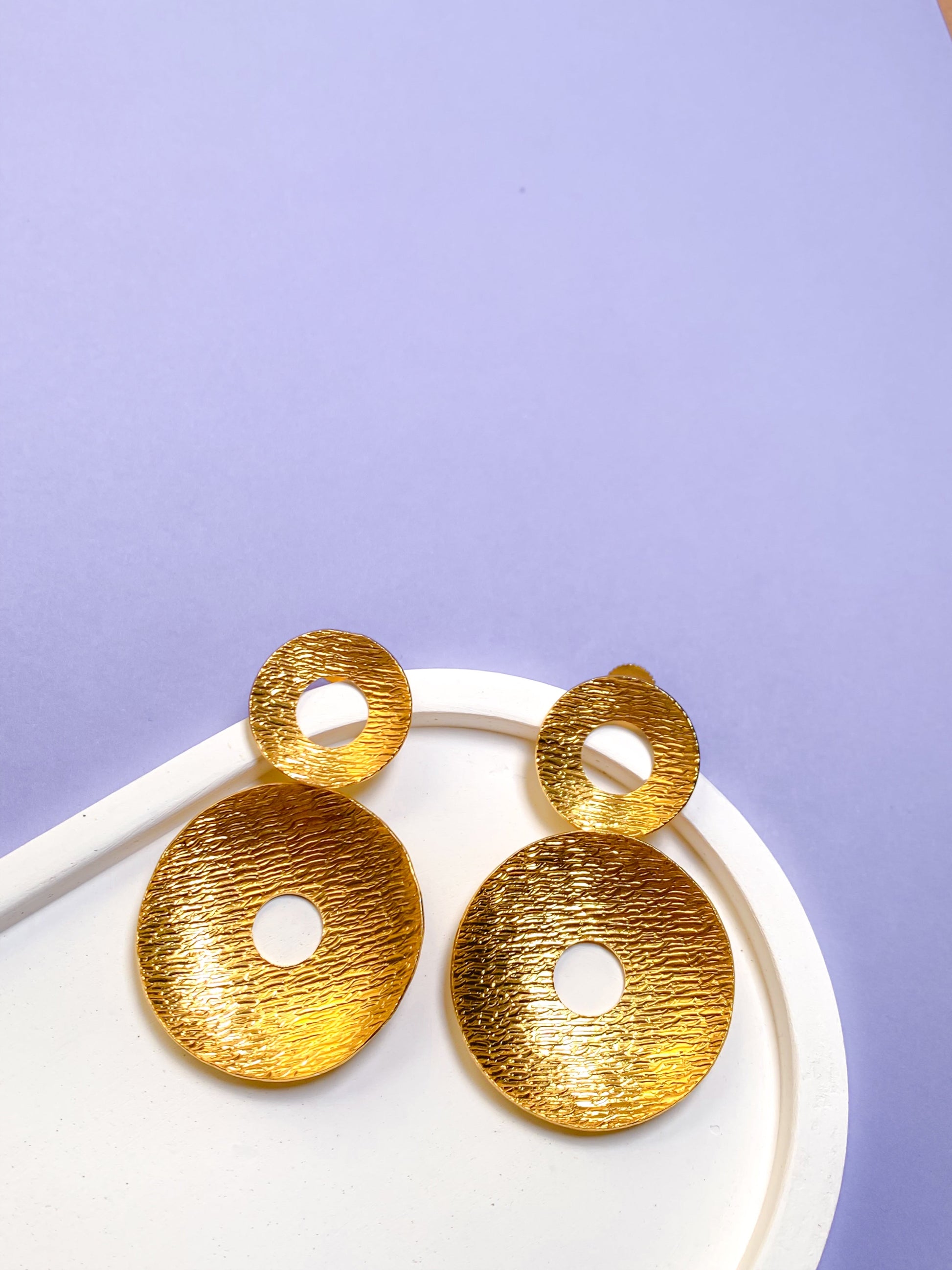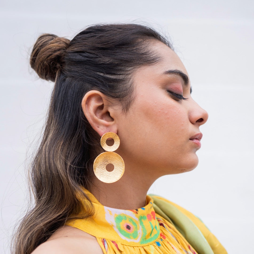 - THIS EARRINGS ARE HANDCRAFTED USING 18K GOLD PLATED BRASS WITH HAMMERING DETAIL.